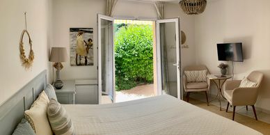 2 személyes szoba francia ággyal, saját fürdőszobával, klímával, egy kis hűtővel felszerelve. Kert és medence használattal, grillezési lehetőséggel, ingyenes parkolással az udvaron. (itt konyha nincs, de a kertben van lehetőség egyszerűbb főzésre, grillezésre)